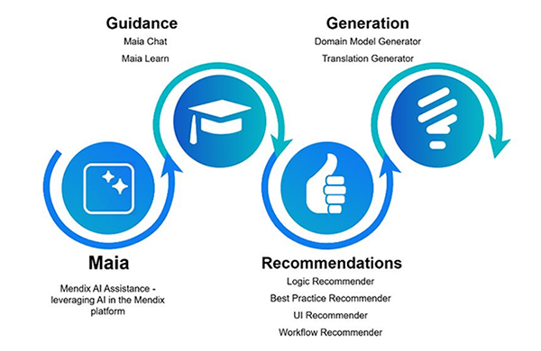 AI assisted development aims to use AI technology to enhance the development process by automating repetitive tasks and recommending code solutions. With the release of Mendix 10.12 in the summer of 2024, the integration of the Mendix AI Assistant (Maia) aims to help developers with building applications. This tool has seen rapid growth in capabilities, which was seen with the release of Maia Learn at the end of 2024 to help developers get up to speed with core concepts of low-code and Mendix Studio Pro.